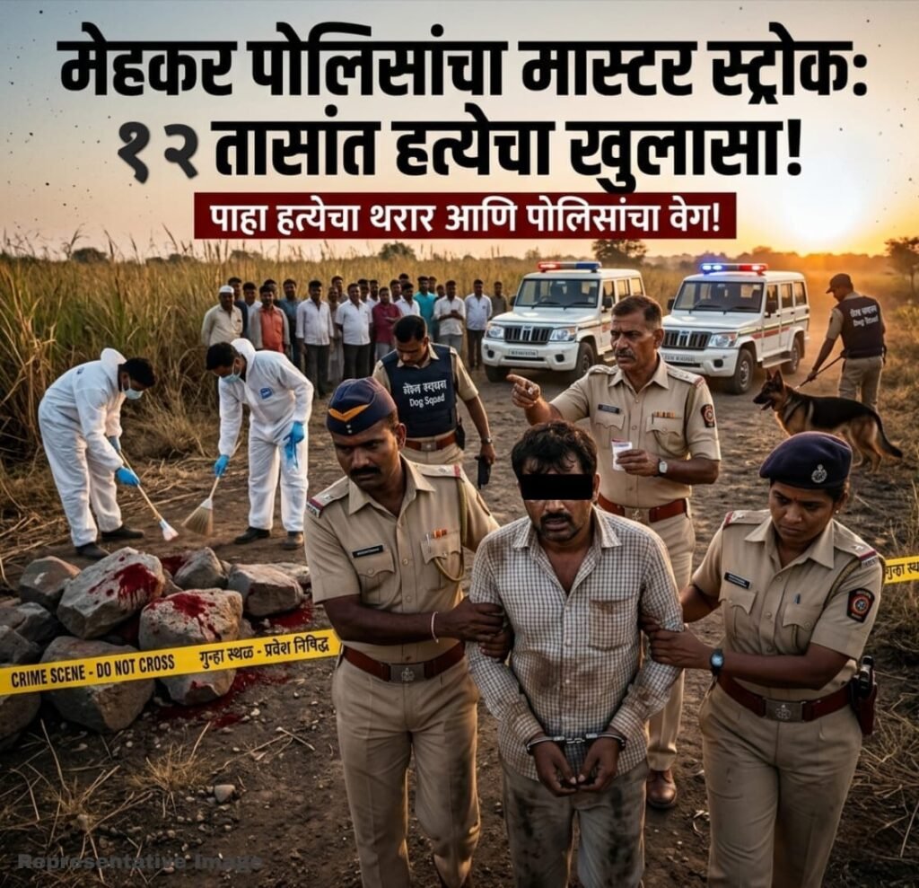 मेहकर (प्रतिनिधी): जिल्ह्यात कायद्याचा धाक संपला की काय, असा प्रश्न विचारणाऱ्या गुन्हेगारांना मेहकर पोलिसांनी आज आपल्या धडाकेबाज कामगिरीने सणसणीत चपराक दिली आहे. खामखेड रोडवरील एमआयडीसी परिसरात एका तरुणाची निर्घृण हत्या करून पसार झालेल्या आरोपीला मेहकर पोलिसांनी अत्यंत कौशल्याने सापळा रचून अवघ्या १२ तासांच्या आत बेड्या ठोकल्या आहेत. पोलिसांच्या या ‘सुपरफास्ट’ कारवाईमुळे संपूर्ण जिल्ह्यात खळबळ उडाली असून, गुन्हेगारांचे धाबे दणाणले आहेत.